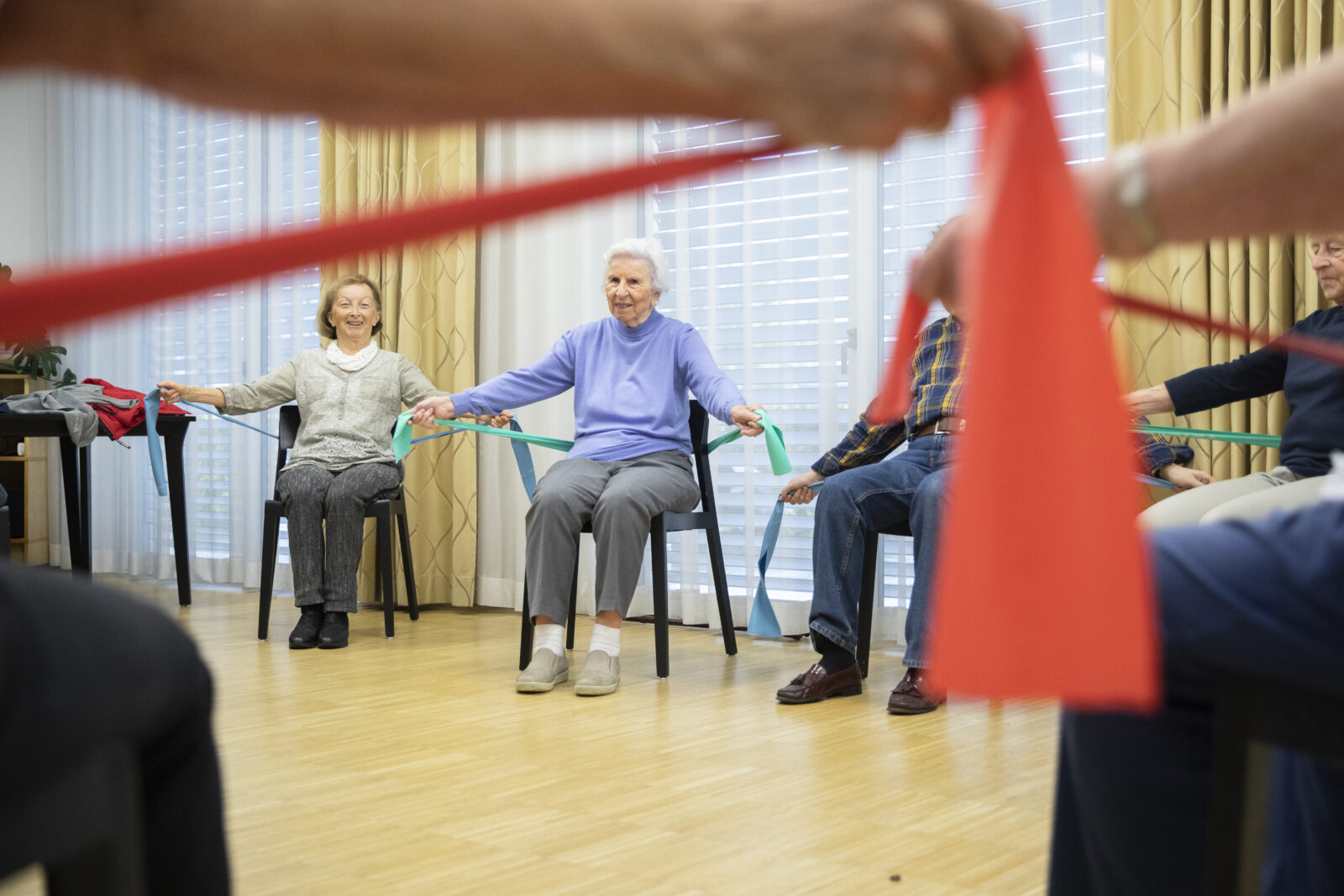Ein Bein ausstrecken und die Zehen langsam zu sich heranziehen und wieder ausstrecken. Anschliessend das Bein wechseln. Jeweils 5 bis 10 Mal wiederholen.