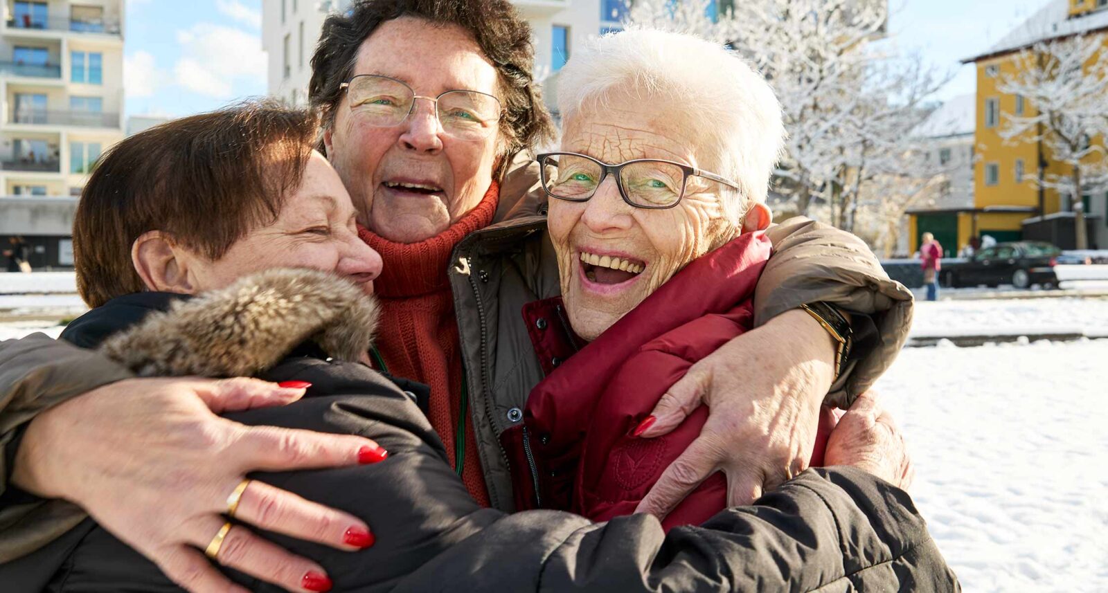 «In unserem Haus sind wir alle per Du», erzählt Gisela Döbeli. Sie ist Mieterin in einem der vier Häuser der SAW-Siedlung Frieden in Affoltern. Eingezogen ist sie 2011 als Erstmieterin nach der Fertigstellung der Siedlung: «Ich habe mich mit den Nachbarn in meinem Haus von Anfang an sehr wohl gefühlt.» Ebenfalls als Erstmietende eingezogen sind Jakob und Hedi Imholz, die schon über 50 Jahre in Affoltern wohnen. Sowohl Gisela Döbeli als auch Jakob und Hedi Imholz engagieren sich seit ihrem Einzug für eine aktive Nachbarschaft. Mit der Hilfe weiterer Nachbar*innen sind daraus drei jährliche Feste sowie 14-tägliche Kartenspielnachmittage geworden. Bei diesen Anlässen trifft man sich, lernt sich kennen, teilt sich zuerst die Arbeit und später die Erinnerungen. Die Nachbarschaft im Haus trägt aber auch im Alltag. «Alle grüssen, alle fragen, wie’s geht, alle wünschen einen schönen Tag», so Gisela Döbeli.