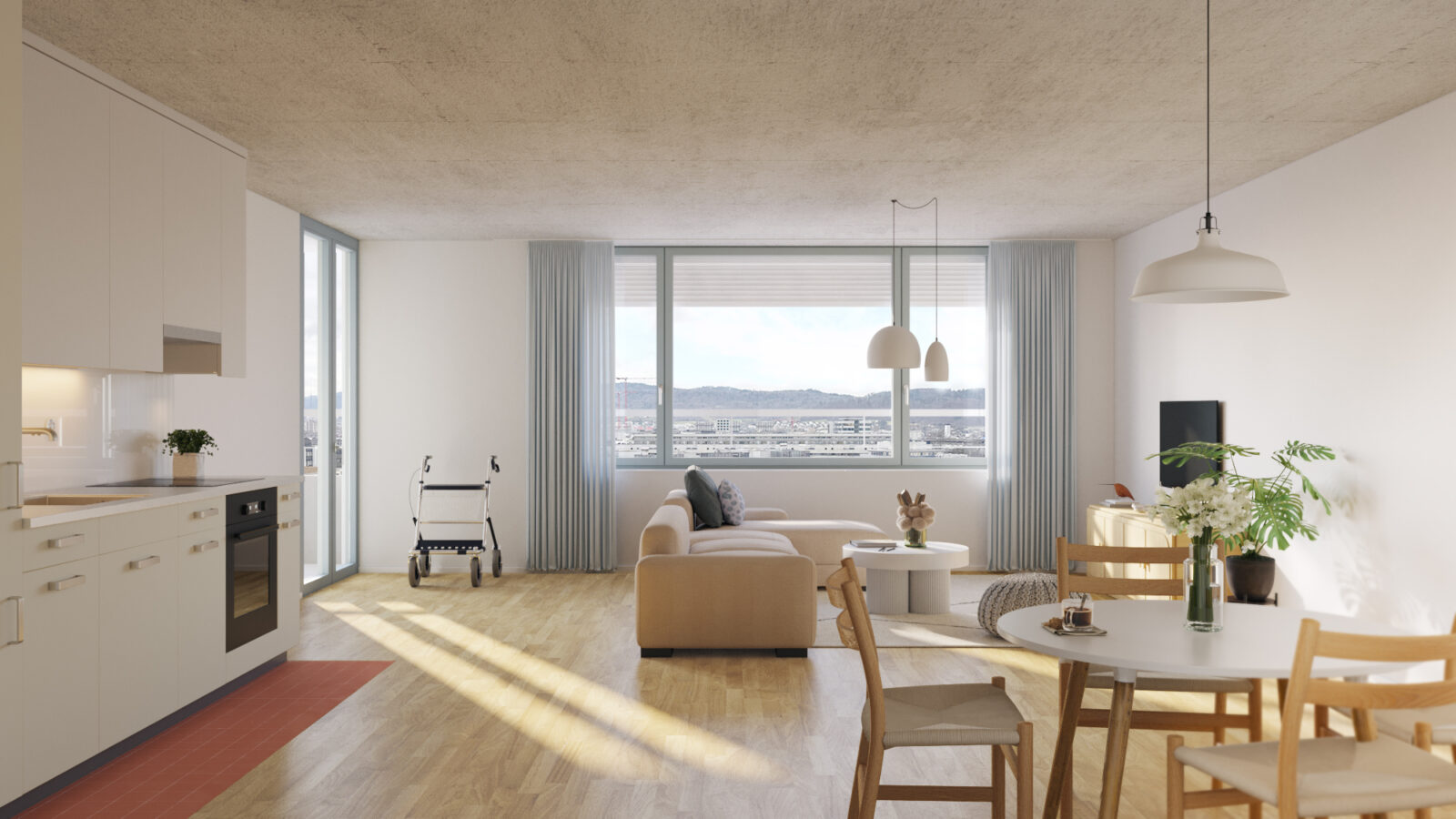 In der Siedlung LETZI entstehen 265 gemeinnützige Wohnungen für alle Generationen. Im Hochhaus vermietet die SAW 131 Alterswohnungen. Bezug ist im Herbst 2025.