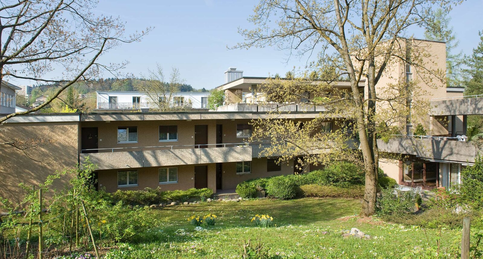 Das Zentrum des Quartiers, die Umgebung Zehntenhausplatz, erreichen Sie zu Fuss in wenigen Minuten. Dort finden Sie verschiedene Restaurants, Cafés, Supermärkte, eine ärztliche Praxis und Apotheken. Der nahegelegene Quartiertreff Zehntenhaus ist ein beliebter Treffpunkt im Quartier. Er hat jeden Monat ein vielfältiges Programm, insbesondere für Senior*innen. Die grüne Umgebung sorgt für eine entspannte Atmosphäre und lädt zum Spazieren ein. Die Haltestellen zahlreicher Buslinien sowie der Bahnhof Affoltern liegen wenige Gehminuten von der Siedlung entfernt.