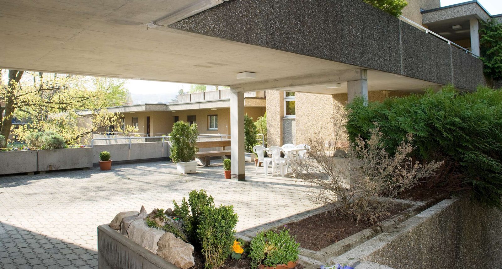Für Veranstaltungen oder private Feiern steht Ihnen gratis ein Gemeinschaftsraum mit Küche zur Verfügung. Die Terrasse sowie die gemeinsame Waschküche mit Trocknungsraum dürfen alle Mieter*innen nutzen.