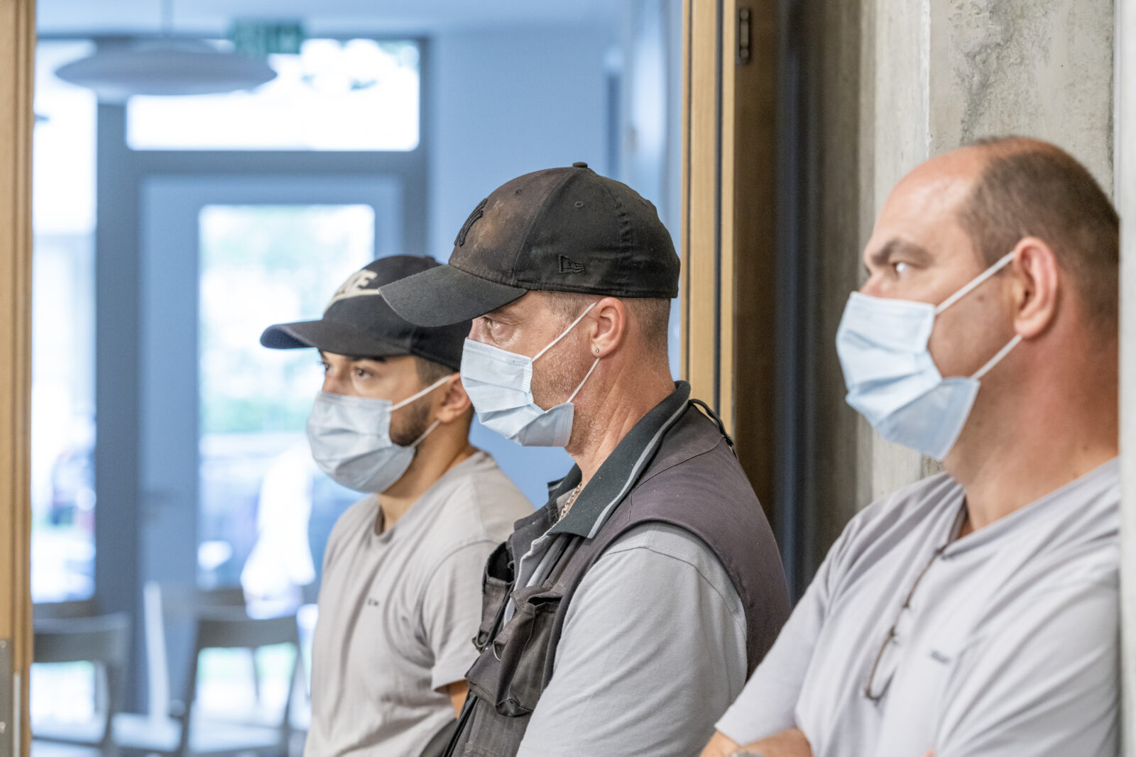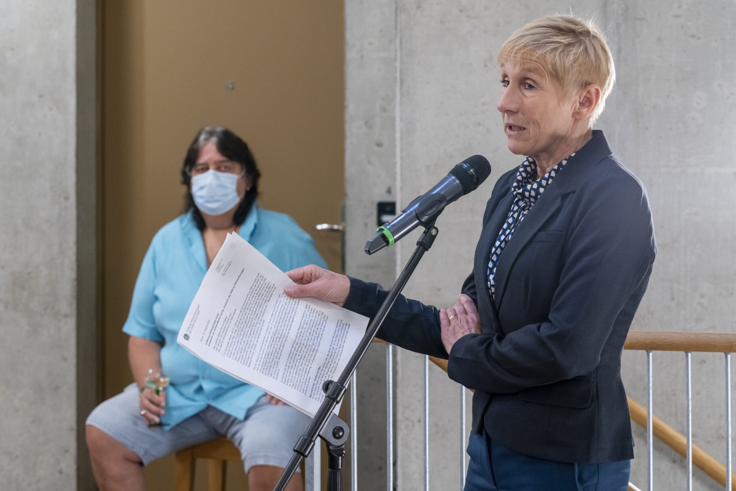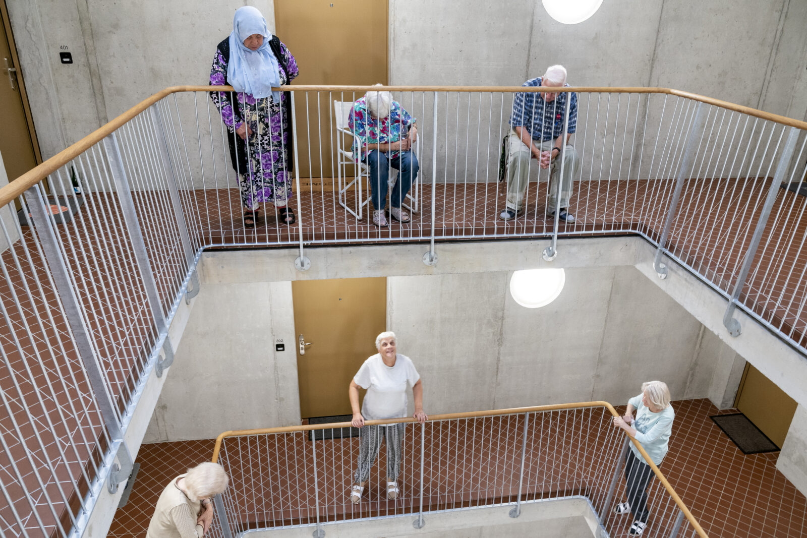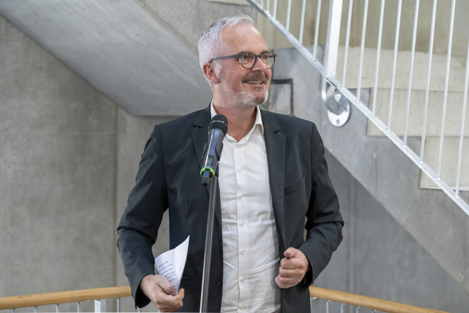 Die international bekannte Performancekünstlerin Nevin Aladağ aus Berlin hat für jeden der vier Eingangsbereiche bespielbare Kunst-Instrumente geschaffen: je ein Saiteninstrument, eine Gruppe unterschiedlich geformter Wandtrommeln und ein mit Spiegeln hinterlegtes Glockenspiel. Diese ungewöhnliche «Kunst am Bau» (kuratiert von Karin Frei Rappenecker, Art Agency) lädt nicht nur zum Betrachten, sondern auch zur spontanen Benutzung ein. Wie die Instrumente klingen, demonstrierten an der «Mini-Eröffnung» die beiden Musiker Leo Marcionetti (Saiten- und Zupfinstrumente) und Hannes Wittwer (Schlaginstrumente und Glockenspiel). In Zukunft wird es den Mieterinnen und Mietern sowie ihren Besuchern überlassen sein, wie und wann die musikalische Installation zu hören sein wird.